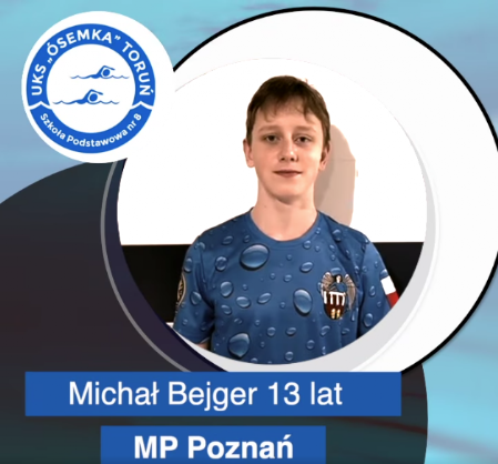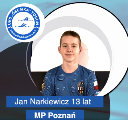 Bejger Michał - 5 m-sce 400m dowolnym; Chylińska Nicola - 21 m-sce 100m klasycznym; Cziczak Marcelina - 🥈100m motylkowym & 5 m-sce 400m dowolnym; Daniels Wojtek - 6 m-sce 200m grzbietem & 7 m-sce 100m motylkowym; Fijałkowski Hubert - 20 m-sce 100m klasycznym; Juhnke Henryk - 6 m-sce 100m klasycznym & 11 m-sce 200m grzbietem; Jurkiewicz Hania - 🥉200m grzbietem & 🥉100m klasycznym; Kamiński Dawid - 🥉100m motylkowym & 4 m-sce 400m dowolnym; Langa Marcel - 🥇200m grzbietem & 🥉400m dowolnym; Lewandowska Agata - 🥈400m dowolnym & 5 m-sce 100m motylkowym; Mychlewicz Julian - 14 m-sce 100m klasycznym; Narkiewicz Jan - 🥉200m grzbietem & 7 m-sce 400m dowolnym; Plińska Małgorzata - 14 m-sce 200m grzbietem & 22 m-sce 100m klasycznym; Wesołowski Filip - 5 m-sce 100m klasycznym; Jak drużynowe zawody, to również wspólne ściganie w sztafetach - nasza reprezentacja zajęła 🥈miejsce w wyścigu 4x50m zmiennym mix - Marcel, Agata, Dawid & Michał 👏